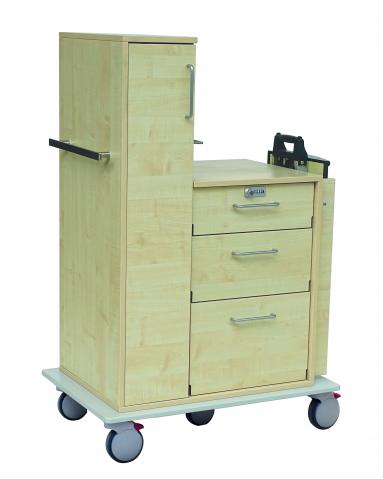 Patientenwagen mit Tablett, Zahlenschloss und Euroschiene aus Edelstahl
