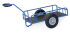 Handwagen aus Stahlrohr geschweißt, pulverbeschichtet brillantblau (RAL 5007). Ladefläche aus wasserfestem Sperrholz. Geländer 180/250 mm hoch, Deichsel anschraubbar, Ladefläche aus wasserfestem Sperrholz. Räder mit Luftbereifung. Naben mit Rollenlager.